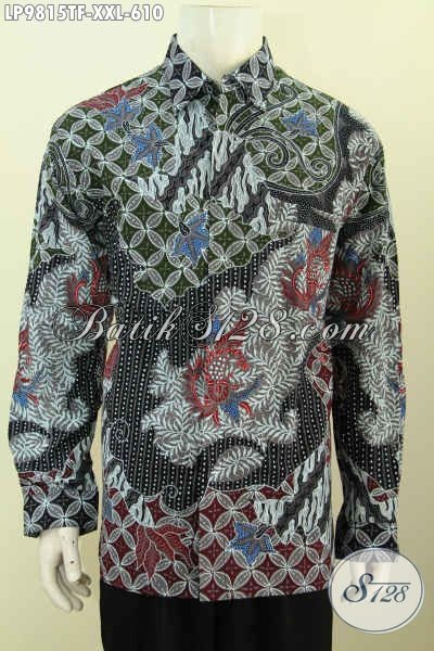 Jual Kemeja Batik Premium, Baju Batik Solo Mewah Full Furing Lengan Panjang Buatan Solo Motif Klasik Tulis Asli Yang Membuat Pria Gemuk Gagah Dan Tampan [LP9815TF-XXL]