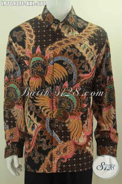 Jual Kemeja Batik Premium Online, Hem Batik Jumbo Halus Motif Mewah Proses Tulis Spesial Untuk Pria Gemuk, Bahan Adem Model Lengan Panjang Pakai Furing [LP7092TF-XXL]