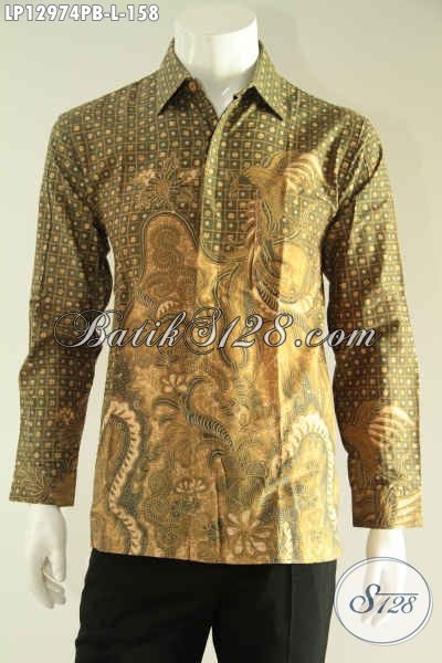 Jual Kemeja Batik Pria Lengan Panjang Halus Motif Terkini Cocok Untuk Acara Formal Dan Seragam Kantor, Baju Batik Solo Asli Kwalitas Istimewa Harga Biasa [LP12974PB-L]