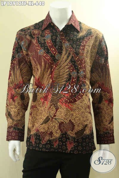Jual Kemeja Batik Pria Lengan Panjang Ukuran XL Daleman Full Furing, Pakaian Batik Mewah Jenis Tulis Motif Terbaru, Pria Tampil Gagah Menawan [LP12912TF-XL]