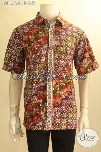 Jual Kemeja Batik Pria Lengan Pendek Kwalitas Istimewa, Baju Batik Solo Jawa Tengah Halus Motif Modern Klasik Jenis Cap Tulis, Penampilan Lebih Gagah Dan Berkelas [LD11977CT-L]
