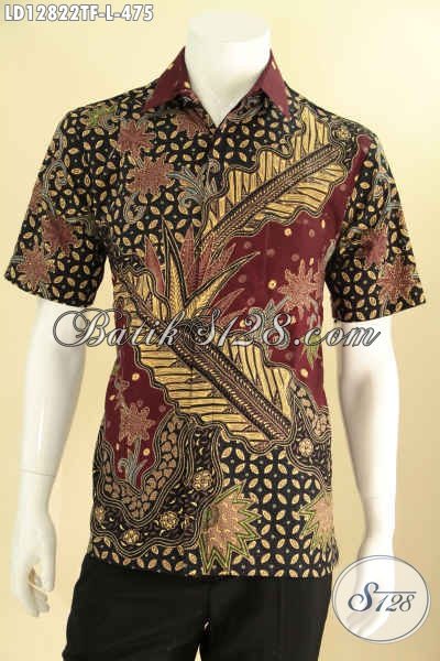 Jual Kemeja Batik Pria Mewah Model Lengan Pendek, Busana Batik Solo Asli Mewah Daleman Full Furing, Motif Terkini Jenis Tulis Hanya 400 Ribuan [LD12822TF-L]