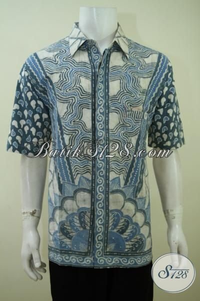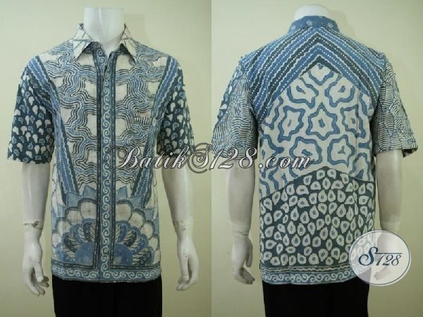 Jual Kemeja Batik Pria Trend Masa Kini, Busana Batik Tulis Mewah Motif Klasik Warna Biru [LD3417TA-XL]