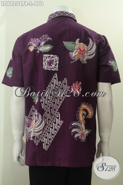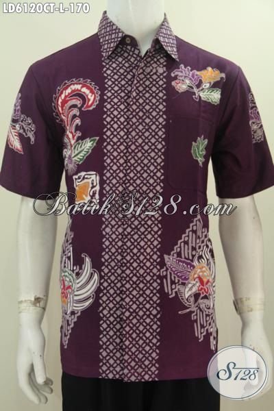 Jual Kemeja Batik Ungu Untuk Pria Ukuran L, Hem Batik Halus Motif Bunga Desain Trendy Bahan Adem Proses Cap Tulis Bikin Penampilan Terlihat Berkelas [LD6120CT-L]
