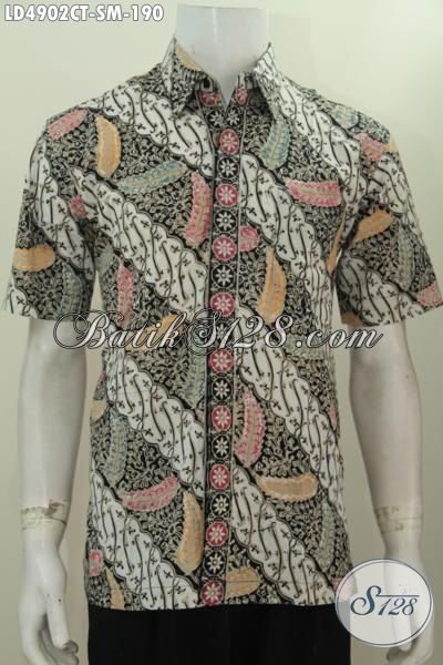 Jual Kemeja Lengan Pendek Bahan Batik Motif Keren Proses Cap Tulis, Pakaian Batik Kawula Muda Masa Kini Buat Tampil Modis Dan Gaya [LD4902CT-S , M]