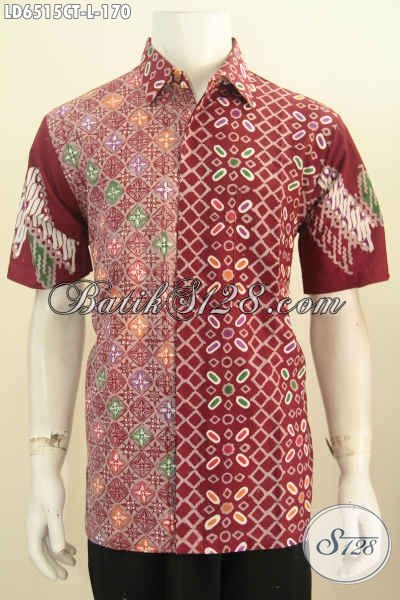 Jual Kemeja Lengan Pendek Warna Merah Bahan Batik Cap Tulis Kwalitas Bagus Berbahan Adem Motif Kombinasi Asli Dari Jawa Tengah [LD6515CT-L]