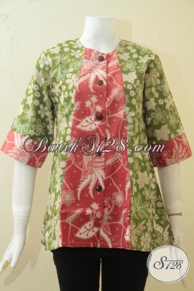 Jual Koleksi Baju Batik Solo Terbaru, Blus Batik Modern Desain Keren Perpaduan Dua Motif Dan Warna Membuat Cewek Terlihat Manis [BLS3364BT-S]