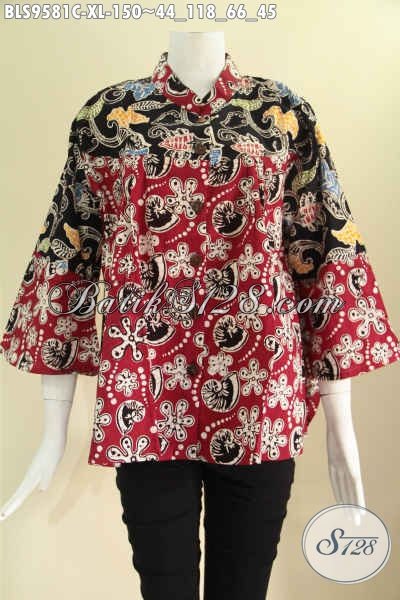Jual Koleksi Busana Batik Wanita Terbaru, Baju Batik Modern Khas Solo Lengan 7/8 Kerah Shanghai 2 Motif Pakai Kancing Depan, Bikin Penampilan Lebih Mempesona [BLS9581C-XL]