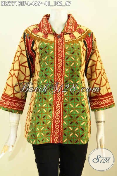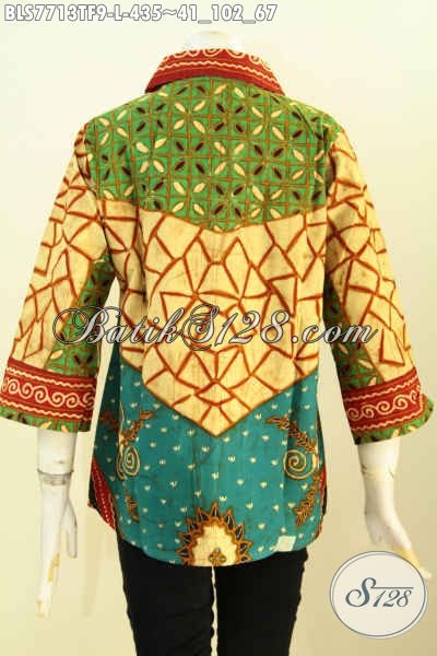 Jual Online Baju Batik Mewah Untuk Wanita Karir, Blus Klasik Motif Sinaran Bahan Halus Proses Tulis Daleman Pake Tricot, Tampil Berkelas Dan Istimewa [BLS7713TF-L]