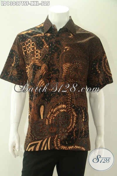 Jual Online Baju Batik Pria Modern Motif Elegan Jenis Tulis Soga, Kemeja Batik Lengan Pendek Mewah Pakai Furing Spesial Buat Yang Berbadan Gemuk Hanya 500 Ribuan Saja [LD13037TSF-XXL]