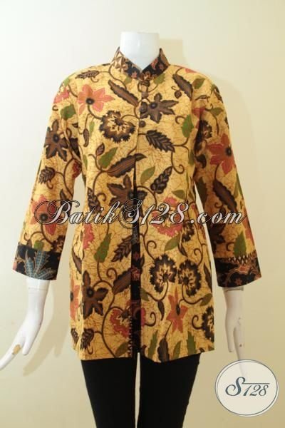 Jual Online Baju Batik Printing Warna Klasik, Batik Solo Motif Bunga-Bunga Halus Pas Untuk Ke Kantor [BLS3021P-M]