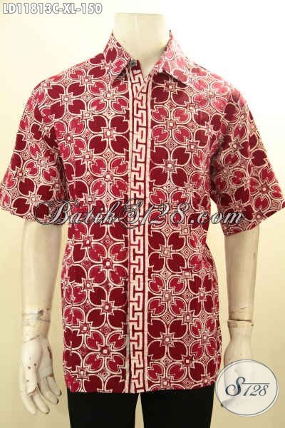 Jual Online Baju Batik Solo Jawa Tengah Nan Berkelas, Pakaian Batik Istimewa Motif Bagus Warna Merah Proses Cap, Penampilan Lebih Rapi Dan Percaya Diri [LD11813C-XL]