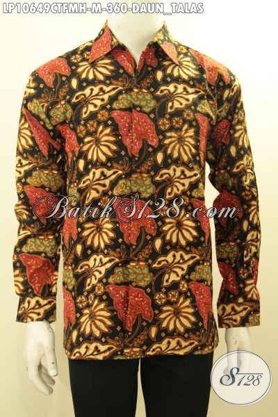 Jual Online Baju Batik Solo Terbaru, Kemeja Batik Pria Lengan Panjang Motif Daun Talas Proses Cap Tulis Bahan Adem, Penampilan Lebih Mempesona [LP10649CTFMH-M]