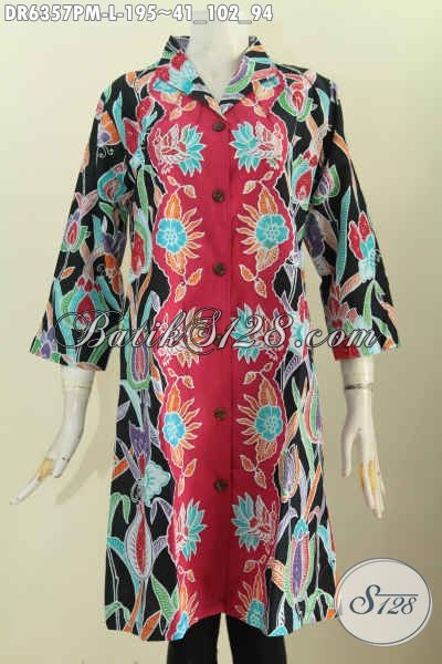 Jual Online Baju Batik Wanita Terkini, Pakaian Batik Solo Halus Model Kerah Langsung Bahan Adem Motif Proses Kombinasi Tulis Bisa Untuk Santai Dan Formal [DR6357PM-L]