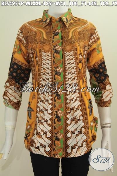 Jual Online Baju Blus Modis Nan Elegan Motif Klasik Untuk Wanita Kantoran, Pakaian BAtik Motif Sinaran Proses Printing Lengan 7/8 Berbahan Halus Yang Nyaman Di Pakai Harga 100 Ribuan [BLS4957P-L]