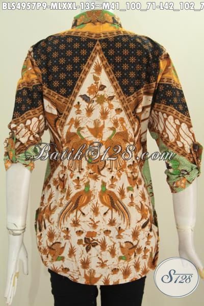 Jual Online Baju Blus Modis Nan Elegan Motif Klasik Untuk Wanita Kantoran, Pakaian BAtik Motif Sinaran Proses Printing Lengan 7/8 Berbahan Halus Yang Nyaman Di Pakai Harga 100 Ribuan [BLS4957P-M , L , XXL]