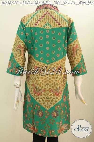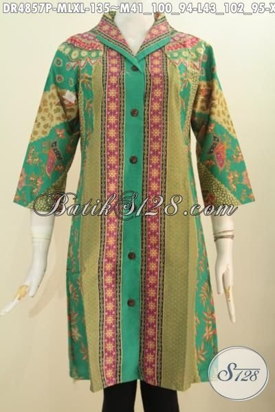 Jual Online Baju Dress Batik Kerah Langsung Kwalitas Istimewa Harga Biasa, Produk Pakaian Batik Motif Klasik Sinaran Proses Printing Asli Buatan Solo Untuk Kerja Dan Rapat [DR4857P-M , L , XL]