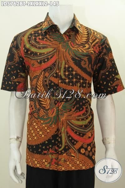 Jual Online Baju Hem Batik Lengan Pendek Kwalitas Bagus Harga Terjangkau, Busana Batik Kombinasi Tulis Motif Elegan Untuk Penampilan Lebih Gagah Berwibawa [LD5762BT-L , XL , XXL]