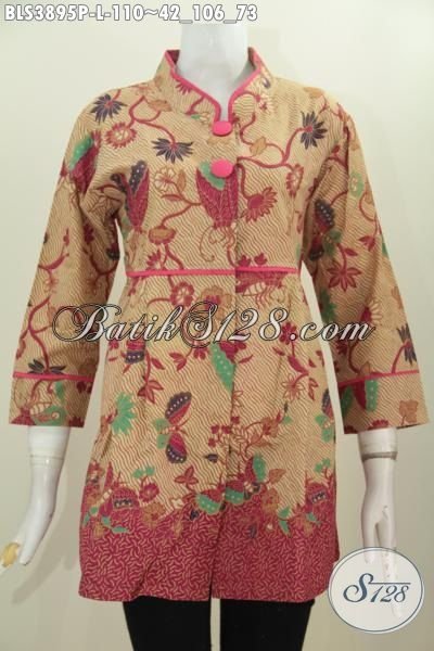 Jual Online Baju Kerja Batik Modis Dan Elegan Tampil Keren, Blus Plisir Polos Dengan Kerah Shanghai Proses Print Motif Bagus Harga Murmer [BLS3895P-L]