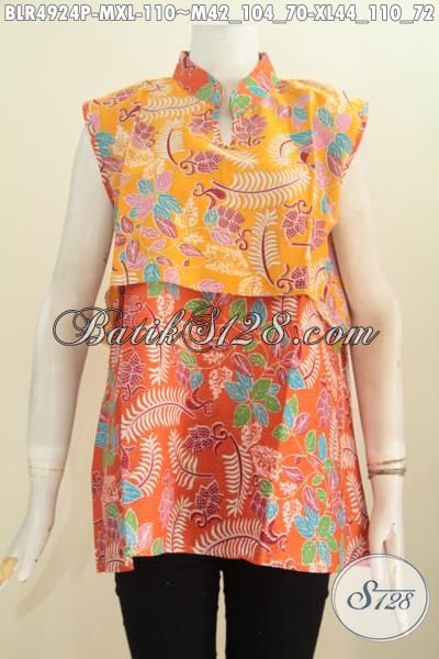 Jual Online Balero Batik Keren Kombinasi Warna Kuning Dan Pink, Busana Trendy Bahan Batik Printing Motif Bagus Harga Terjangkau [BLR4924P-M , XL]