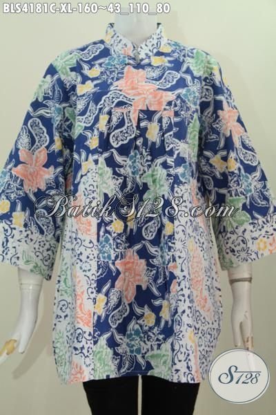 Jual Online Batik Blus Kerah Shanghai Dengan Desain Terbaru Yang Inovatif Serta Berkelas, Bisa Untuk Santai Dan Ke Pesta, Bahan Halus Proses Cap Asli Dari Solo [BLS4181C-XL]