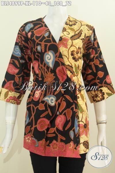 Jual Online Batik Blus Klasik Motif Kombinasi Dengan Model Kimono Nan Keren, Pakaian Batik Wanita Dewasa Karir Aktif Ukuran XL Harga 100 Ribuan [BLS4899P-XL]