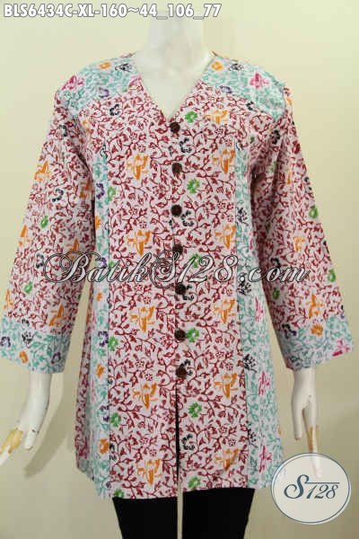 Jual Online Batik Blus Masa Kini, Produk Pakaian Batik Kerah V Dual Motif Bahan Halus Harga Terjangkau [BLS6434C-XL]