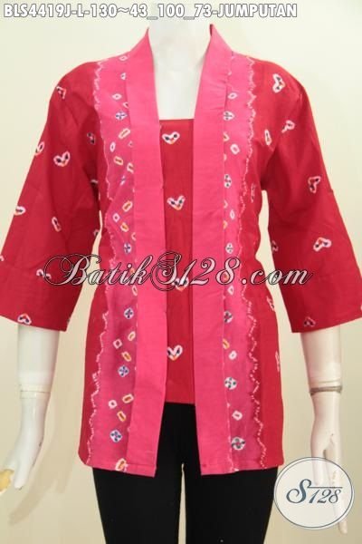 Jual Online Batik Blus Merah Model Kartini Dengan Aksen Pink Cewek Banget, Busana Batik Printing Halus Kwalitas Mewah Harga Murah [BLS4419J-L]