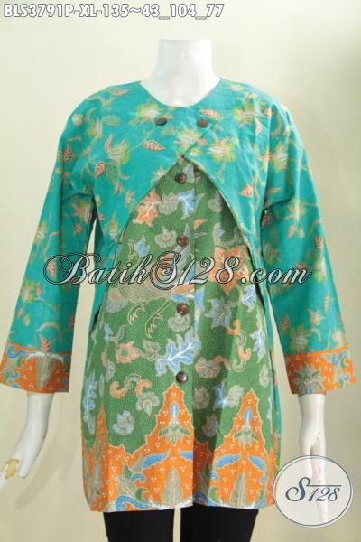 Jual Online Batik Blus Model Kombinasi Balero, Pakaian Batik Jawa Proses Printing Warna Keren Banget Trend Mode Terbaru Untuk Tampil Terlihat Cantik Mempesona [BLS3791P-XL]