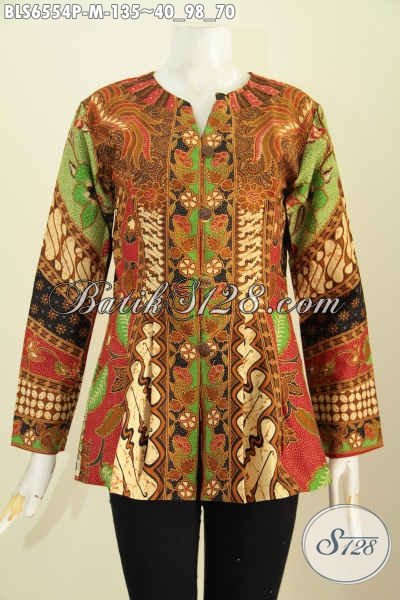 Jual Online Batik Blus Modern, Pakaian Batik Elegan Motif Klasik Untuk Wanita Muda Model Lengan Panjang Tanpa Krah Bahan Adem Nyaman Di Pakai [BLS6554P-M]