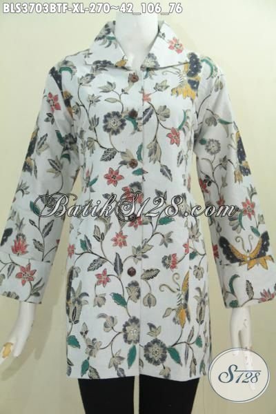 Jual Online Batik Blus Motif Bunga Proses Kombinasi Tulis, Busana Batik Desain Terkini Pake Furing Yang Mampu Bikin Cewek Terlihat Sempurna [BLS3703BTF-XL]