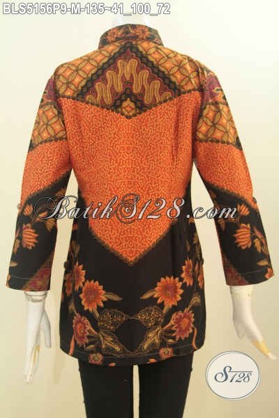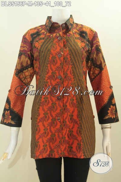 Jual Online Batik Blus Wanita Terbaru, Hadir Dengan Desain Elegan Kerah Kemeja Dan Berbahan Adem Motif Mewah Proses Printing, Bisa Juga Untuk Rapat [BLS5156P-M]