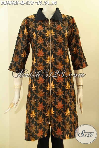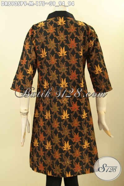 Jual Online Batik Dress Elegan Motif Bagus, Hadir Dengan Desain Lengan 3/4 Kombinasi Kain Polos Kerah Serta Pakai Resleting Depan, Pas Untuk Acara Santai Dan Resmi [DR8905P-M]