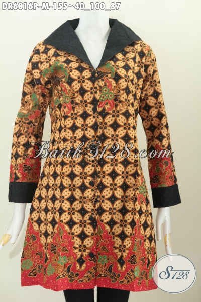 Jual Online Batik Dress Masa Kini, Busana Batik Modis Halus Kwalitas Bagus, Berbahan Adem Kombinasi Emboss Bikin Penampilan Lebih Berkelas [DR6016P-M]