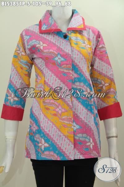 Jual Online Batik Formal Dengan Kombinasi Warna Trendy Khas Wanita Muda Dan Remaja Putri, Blus Batik Plisir Motif Parang Bunga Print Cocok Buat Pesta Dan Kerja [BLS3851P-S]