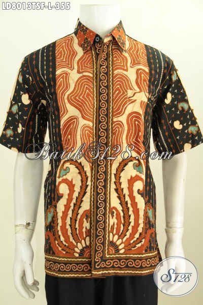 Jual Online Batik Kemeja Lengan Pendek Mewah, Hem Batik Halus Proses Tulis Soga, Baju Batik Kerja Pria Kantoran Model Lengan Pendek Full Furing [LD8013TSF-L]