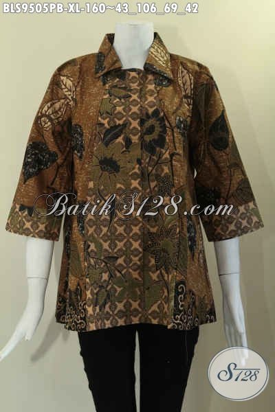 Jual Online Blouse Batik Wanita Terbaru Model Krah Lengan 7/8, Berbahan Halus Padua 2 Motif Dan Pakai Kancing Depan Pas Buat Ngantor [BLS9505PB-XL]
