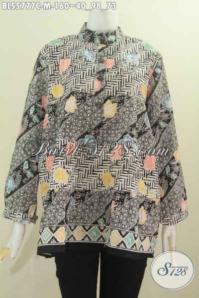 Jual Online Blus Batik Lengan Panjang Kerah Shanghai, Busana Batik Trendy Dan Elegan Dengan Kombinasi Dua Warna Proses Cap Harga 160K [BLS5777C-M]