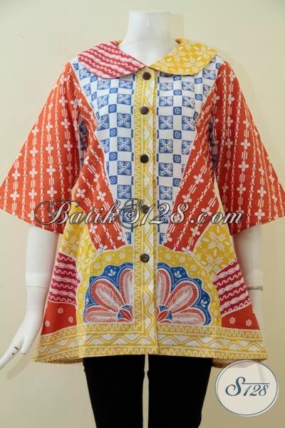 Jual Online Blus Batik Murah Kwalitas Mewah Asli Produk Solo Jawa Tengah, Baju Batik Trendy Wanita Muda Tampil Kece [BLS1738P-M]