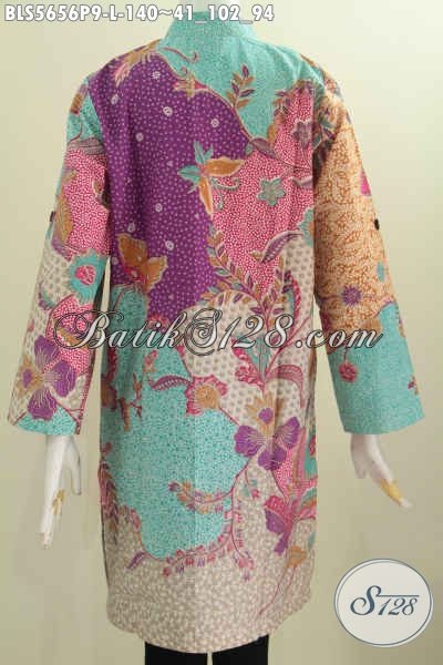 Jual Online Blus Muslim Bahan Batik Printing, Hadir Dengan Model Kerah Shanghai Lengan Panjang Modis Buat Kerja Dan Lebaran [BLS5656P-L]
