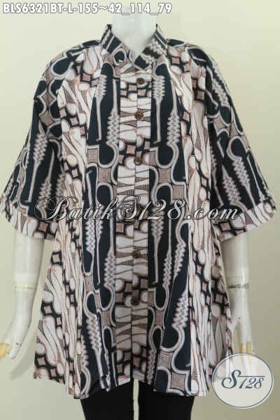 Jual Online Busana Batik Berkelas, Pakaian Batik Modern Untuk Tampil Gaya Dan Elegan Harga 155K Model Kerah Shanghai Motif Klasik [BLS6321BT-L]