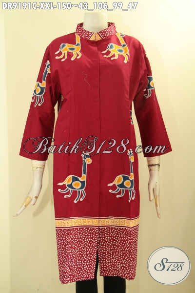 Jual Online Busana Batik Dress Wanita Gemuk Tren Masa Kini, Baju Batik Istimewa Berbahan Halus Motif Trendy Proses Cap, Pas Banget Untuk Acara Resmi Maupun Pesta [DR9191C-XXL]