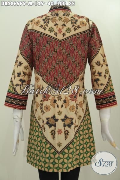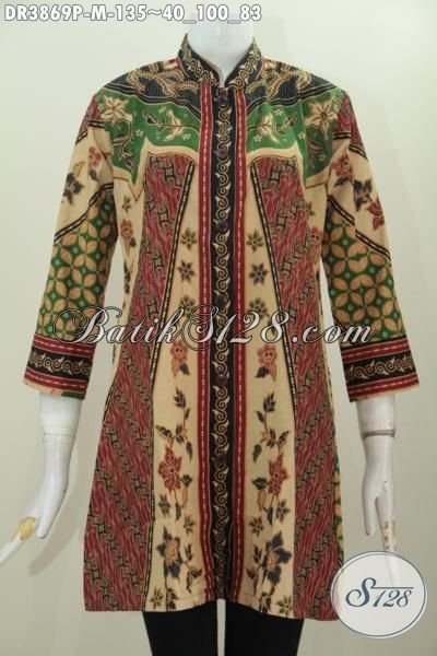 Jual Online Dress Batik Bagus Desain Mewah Kerah Shanghai, Pakaian Batik Klasik Motif Milo Proses Printing Cocok Untuk Acara Formal [DR3869P-M]