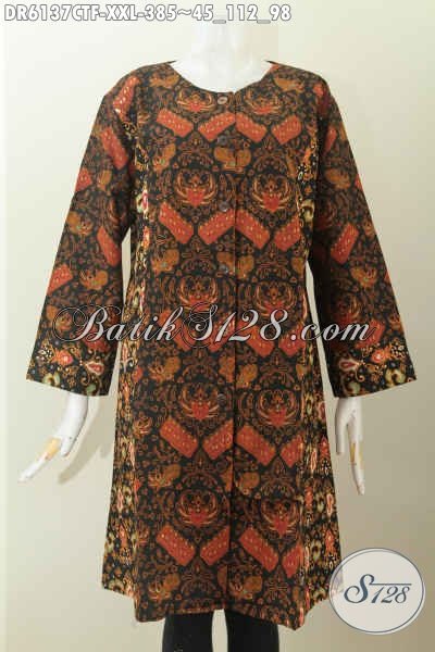 Jual Online Dress Batik Istimewa, Busana Batik 3L Kwalitas Premium Buatan Solo Asli Daleman Full Furing Tampil Lebih Berkelas Size XXL [DR6137CTF-XXL]