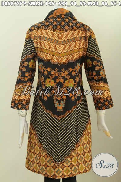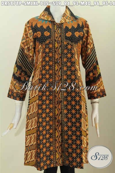 Jual Online Dress Batik Klasik Motif Sinaran, Pakaian Batik Masa Kini Bahan Halus Proses Printing Kerah Kotak Tampil Elegan [DR5878P-S , M , L , XL]