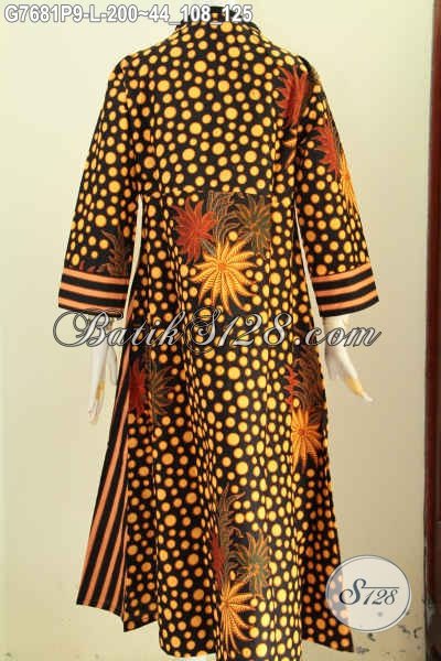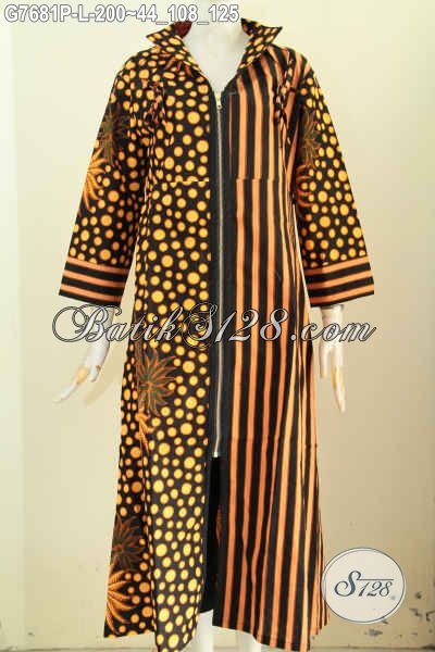 Jual Online Gamis Batik Elegan, Abaya Batik Solo Berkelas, Long Dress Batik Istimewa Model Resleting Depan, Bahan Adem Nyaman Di Pakai Harga 200K [G7681P-L]
