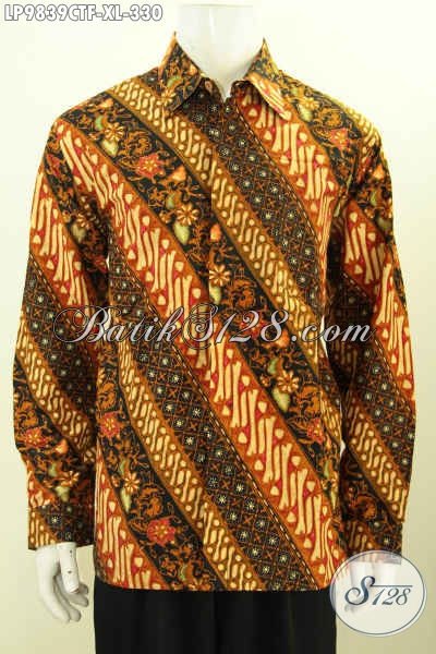 Jual Online Hem Batik Fashion Lengan Panjang Model Kekinian Motif Klasik, Baju Batik Cap Tulis Premium Yang Membuat Lelaki Tampil Gagah Dan Keren [LP9839CTF-XL]