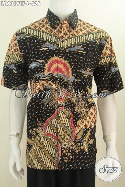 Jual Online Hem Batik Lengan Pendek Mewah, Baju Batik Mahal Buatan Solo Daleman Full Furing, Produk Pakaian Batik Tulis Istimewa Cocok Untuk Kerja Dan Rapat [LD6019TF-L]