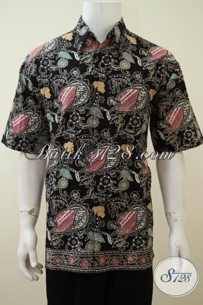 Jual Online Hem Batik Solo Untuk Lelaki Muda Dan Dewasa, Hem Batik Lengan Pendek Dasar Hitam Pria Tampil Elegan [LD3169CT-XL]