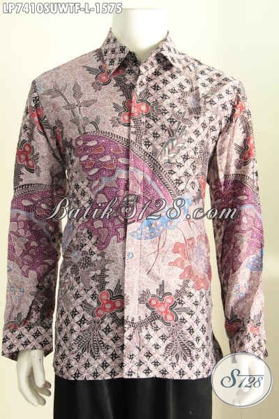 Jual Online Hem Batik Sutra Premium, Kemeja Batik Full Furing Model Lengan Panjang Bahan Halus Untuk Penampilan Lebih Berkwalitas [LP7410SUWTF-L]